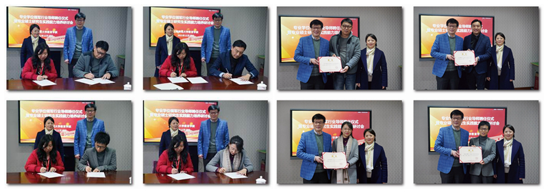 教育学院副院长丁炜代表学院与各位领军行业导师签约。教育学院院长夏惠贤与研究生院副院长刘兰英共同为领军行业导师颁发聘书。