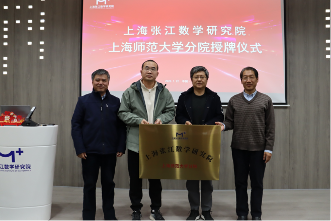 1月22日上午,上海张江数学研究院上海师范大学分院揭牌仪式在浦东新区上海张江数学研究院(以下简称“研究院”)举行。研究院领导、各实验室负责人,复旦大学、上海交通大学、华东师范大学、同济大学、上海大学等分院负责人与代表,上海师范大学科技处、数理学院负责人和上海师大分院代表齐聚一堂,共同参加了授牌仪式。