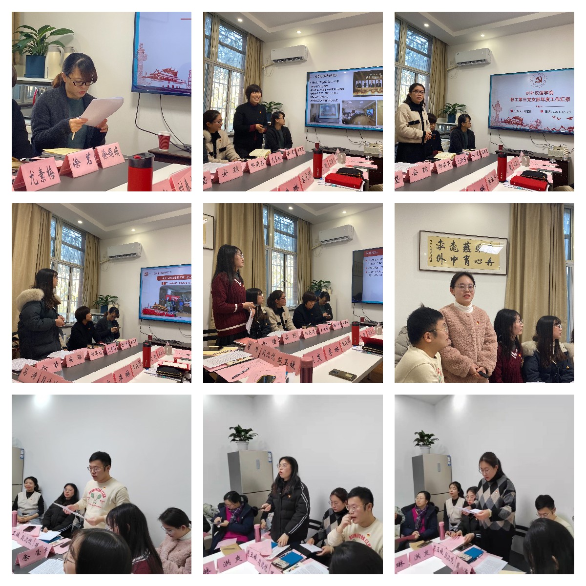12月29日,对外汉语学院在徐汇校区对外汉语学院107室举行2021年度党支部书记述职评议会。学院党委委员、各教工党支部书记和学生党支部书记、学院党委组织员参加会议。