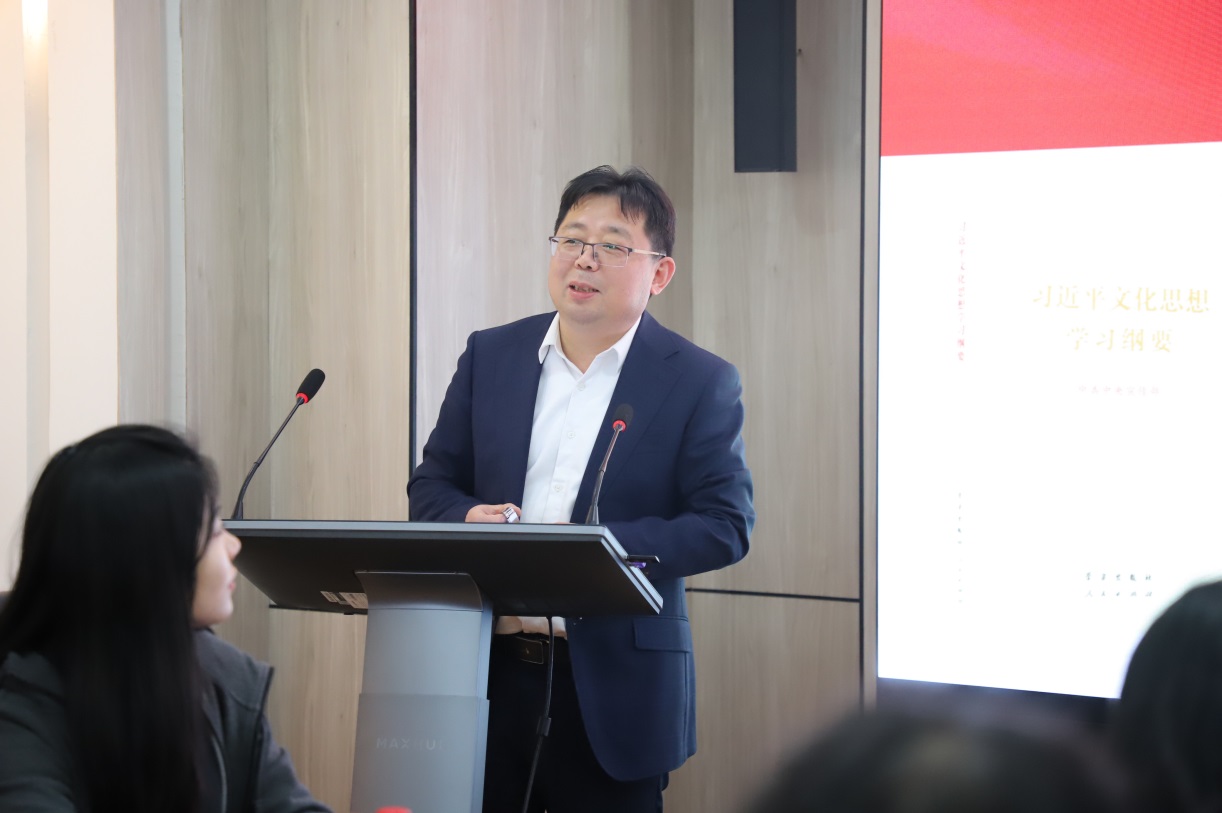 会上,陈方刘教授指出,《习近平文化思想学习纲要》(以下简称《纲要》)是深入学习领会习近平文化思想的权威辅助读物。他全面系统地解读了习近平文化思想,帮助与会教师深入学习领会思想文化脉络;他结合习近平总书记对上海文化建设的指示要求,特别是结合上海建设习近平文化思想最佳实践地的工作任务,强调了要准确把握新时代的文化使命,并提出实施路径。高校肩负着立德树人和弘扬优秀传统文化的重要使命,人文学院要充分发挥文史学科优势,努力推动优秀传统文化的创造性转化和创新性发展。广大教师要学好用好《纲要》,并将相关教学课程迁移应用,切实做到学思用贯通、知信行统一。