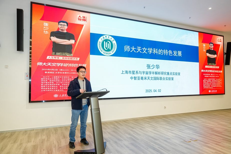 开幕式第二部分,第36次南极科学考察队内陆-泰山站副队长、物理系教授张少华作题为《师大天文学科的特色发展》的科普讲座,为在场师生揭开了学校天文学科发展的神秘面纱。