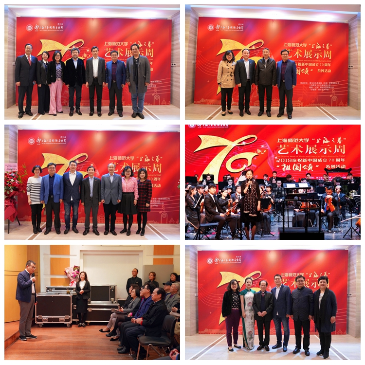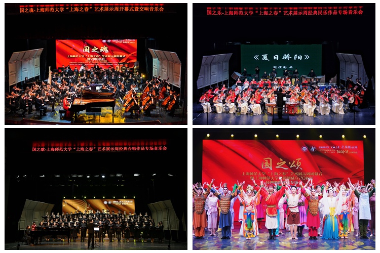 4月14日-4月21日,在我校霞棐剧院举办的8场“祖国颂”系列专场音乐会依次为:“国之魂”上海师范大学“上海之春”艺术展示周开幕式暨交响音乐会、“国之梦”打击乐作品专场音乐会、“国之情”经典钢琴作品专场音乐会、“国之韵”何占豪经典古筝作品专场音乐会、“国之恋”经典声乐作品专场音乐会、“国之乐”经典民乐作品专场音乐会、“国之歌”经典合唱作品专场音乐会、“国之颂”上海师范大学“上海之春”艺术展示周闭幕式暨上海师范大学舞蹈团成立20周年经典舞蹈作品专场。
