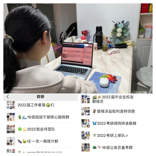 疫情再次席卷给毕业班的就业工作带来了很大的冲击和挑战。2018级辅导员李兰老师居家办公期间,除日常疫情防控工作之外,还通过班干部集中排摸和点对点线上咨询的方式,第一时间排摸清楚所带年级每位同学的毕业去向明细。根据毕业生的情况建立不同的类别,同步更新相关微信群,有针对性地开展工作。联系学院班子领导帮助正在找工作的同学推荐学院合作企业,转发招聘信息、指导完善简历;督促指导待签的同学尽快网签,完成毕业去向登记;指导考研同学复试技巧,推荐调剂院校,掌握每位同学最新考研信息。截至目前,毕业班落实毕业生去向123人,占比56%,就业工作仍在持续稳步推进。