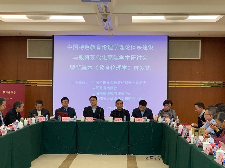 4月27日,“中国特色教育伦理学理论体系建设与教育现代化高端学术研讨会暨新编本《教育伦理学》首发式”于在人民教育出版社举行。本次会议由中国伦理学会教育伦理专业委员会、人民教育出版社、上海师德研究与评价中心、上海师范大学道德文明研究中心共同举办。中国伦理学会会长、清华大学万俊人教授,中国教育学会教育学分会理事长、人教社党委书记兼总编辑郭戈,新编本《教育伦理学》主编、上海师范大学王正平教授分别致辞,教育部教师工作司教师管理与师德建设处朱晨光副处长出席会议。