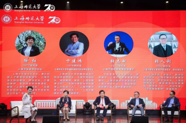 活动中,作为杰出校友代表,上海市实验学校校长徐红,上海师范大学附属杨浦现代职业学校原校长卞建鸿,上海市格致教育集团理事长、格致中学原校长张志敏,上海市静安区教育学院原院长、附校原校长张人利分享了各自对于教育家精神的理解。