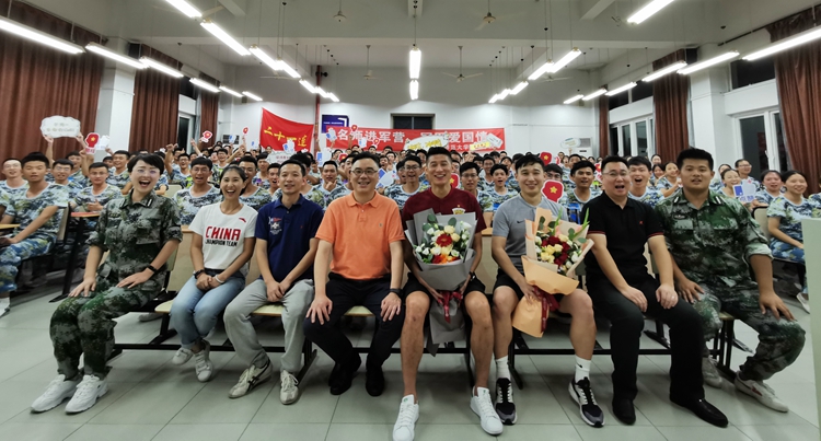 在校、院两级领导高度重视和支持下,本次“名师进军营”主题教育系列活动特别邀请到男足国脚、上港足球俱乐部队员于海莅临现场,为全体新生分享他的人生经历,讲述传承和弘扬体育精神的励志故事。