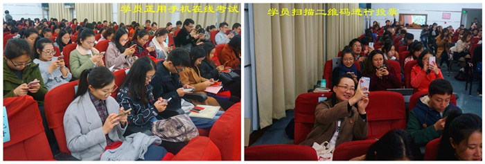 学习班从11月11日到29日结束,参加对象为全体学生党支部书记,覆盖16个学院。为提升教学管理的科学化水平,党校采取电子签到,学员凭校园卡刷卡入场,考勤状况一目了然,无形中强化学员的纪律意识。针对当前大学生大多数是互联网的“土著”,习惯于互联网交流,党校依托微信组建了组长群、各小组学员群,加强党校与学员的直接联系,包括日常通知、征集学习班照片、招募志愿者等等,让学员广泛参与学习班的各项事务。大力探索互联网+模式,例如在“主题党日活动设计方案”比赛中,所有出席人员均可微信投票;在考试环节,依托问卷星,学员可手机在线考试,做到现场考试、系统阅卷、即时公布成绩。在筹备结业工作中,向微信学员群发布“高手招募令”,邀请学员自发报名参与学习班回顾视频制作。当回顾视频短片激昂的音乐响起,当一张张青春的脸庞出现在屏幕,当一幕幕学习场景精彩回放,掌声四起,现场沸腾。学员激动地说:老师,这是我参加过的最好的学生党支部书记培训!