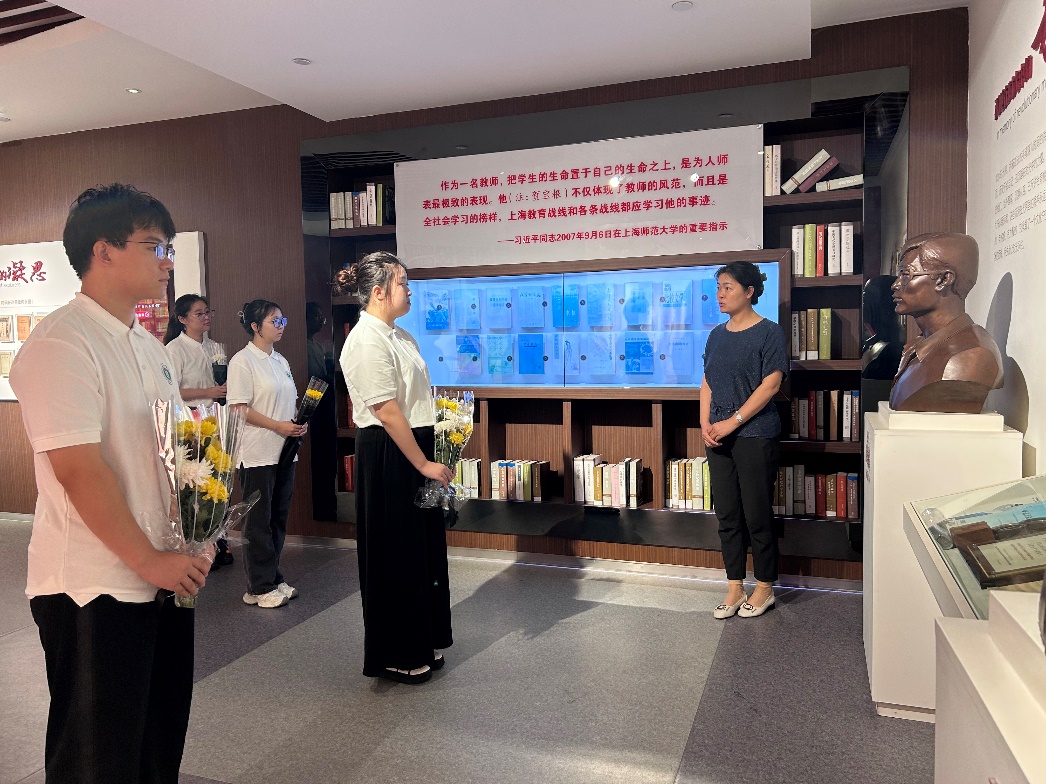 在讲解员的深情讲述中,支教团成员的思绪被带回英烈们奋斗的岁月:贺宝根数十年扎根教育沃土,以“三尺讲台育桃李,一片丹心铸民魂”的坚守,诠释了人民教师的使命担当;肖维海在危急时刻挺身而出,以“勇献青春酬壮志,一腔热血洒练江”的壮举,用年轻的生命践行了青年的家国情怀。每一段事迹都让在场的成员深刻感受到英烈精神中蕴含的初心力量与信仰光芒。