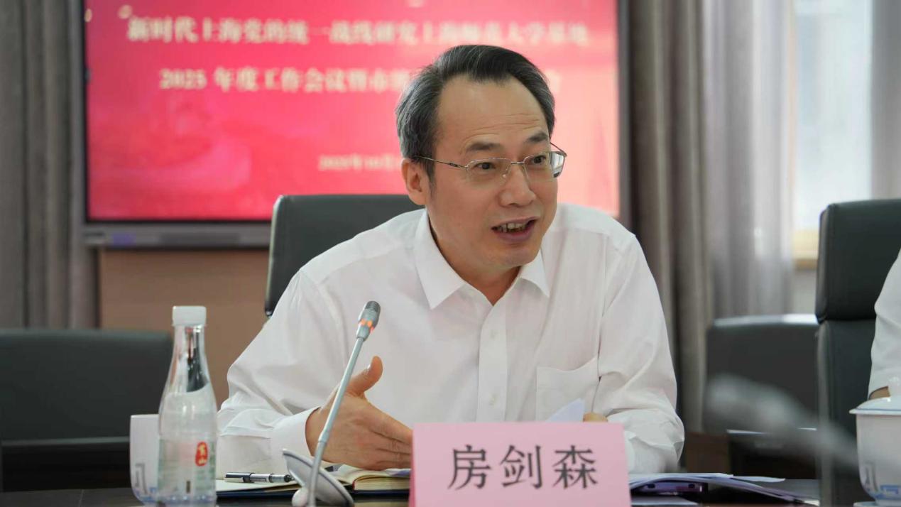 10月15日上午,新时代上海党的统一战线研究上海师范大学基地在外宾楼101会议室召开2025年度工作会议。中共上海市委统战部副部长、市统一战线理论研究会会长房剑森,上海师范大学党委副书记、基地行政主任刘晓敏出席会议。市委统战部研究室主任周华以及基地专家学者等20余人参加会议。会议由上海师范大学党委常委、统战部部长周理主持。