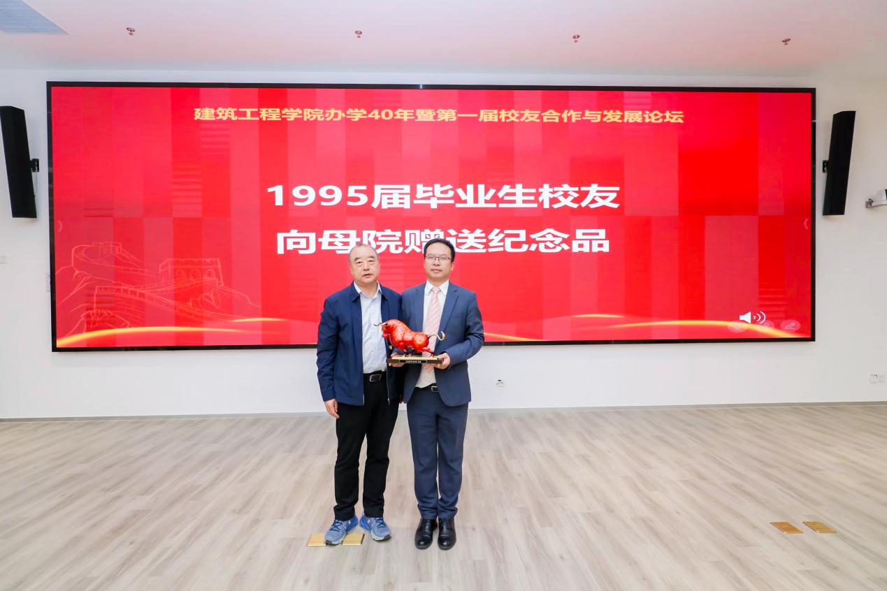 学院老领导、老教师代表王小彭为1995届毕业生校友发放了学籍卡,象征着精神的传承与情感的延续。1995届校友代表上海建工七建集团第二工程公司副总经理张军烈向母院赠送了精心准备的纪念品,表达对母校栽培的感恩之情。