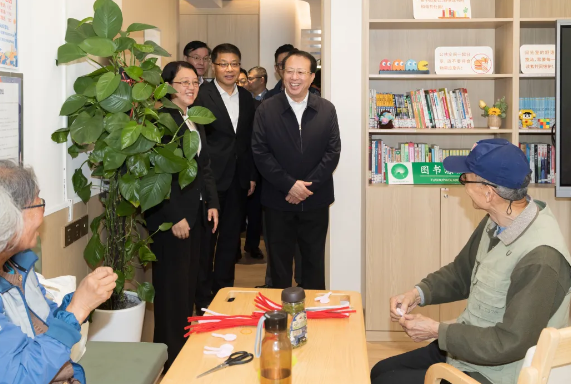 普陀区章家巷社区综合为老服务中心汇集“医、护、康、养”四大功能,提供高质量的家门口养老服务。龚正一行走进中心,察看15分钟养老服务地图、社区卫生服务站、长者食堂等,详细了解为老服务示范社区建设、社区医养结合、就餐服务、加装电梯等工作开展情况。在日托康复中心、社区智慧养老站、阅览室等区域,老人们正在参与康复治疗和手工制作,龚正察看各类设施,向老人致以节日问候。龚正指出,要用心用情用力推进民心工程、办好民生实事,大力发展智慧养老,推动医养、康养深度融合,更好满足老年人的就餐、就医、出行等各方面需求,增强老年人的获得感、幸福感。