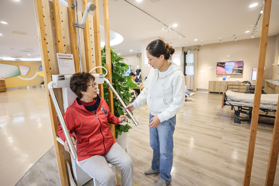 样板间内,还提供多款智能化的适老辅具供银发族们体验使用。