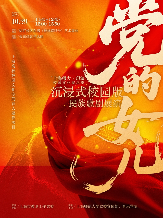 上海师范大学2025版沉浸式校园民族歌剧《党的女儿》,创新采用“四面舞台”空间构型与沉浸式叙事手法,以“红星·忆往昔”“生命·血与火”“暗夜·醒与悟”“重生·光与明”“永恒·歌与梦”“信仰·永传承”六个篇章为叙事脉络,通过老年鹃妹子(田玉梅女儿)与孙女的跨时空追忆为核心线索,生动回溯共产党员田玉梅在江西杜鹃坡革命根据地的峥嵘岁月。剧中细腻刻画了田玉梅同志面对严峻斗争形势坚守革命信仰,最终以生命践行“共产党员永不屈服”誓言的英雄形象,深刻致敬革命先烈的赤诚初心与顽强信念,集中展现信仰的精神力量与红色基因的代际传承。