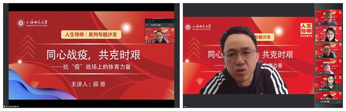 4月27日下午,体育学院邀请院长薛原在腾讯会议为本研近50名学生带来“同心战‘疫’,共克时艰——抗‘疫’战场上的体育力量”主题讲座,与同学们分享了抗“疫”战场上的体育精神。本次沙龙由学院党委副书记、副院长卢丹凤主持。