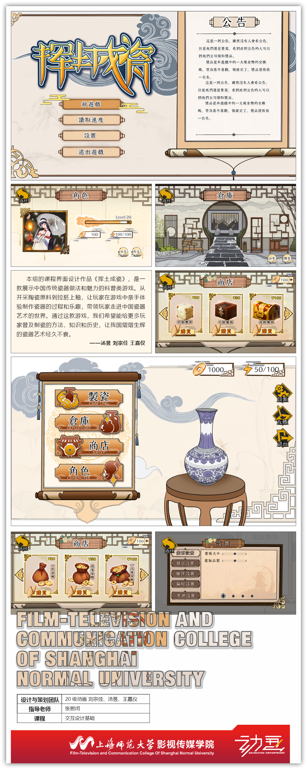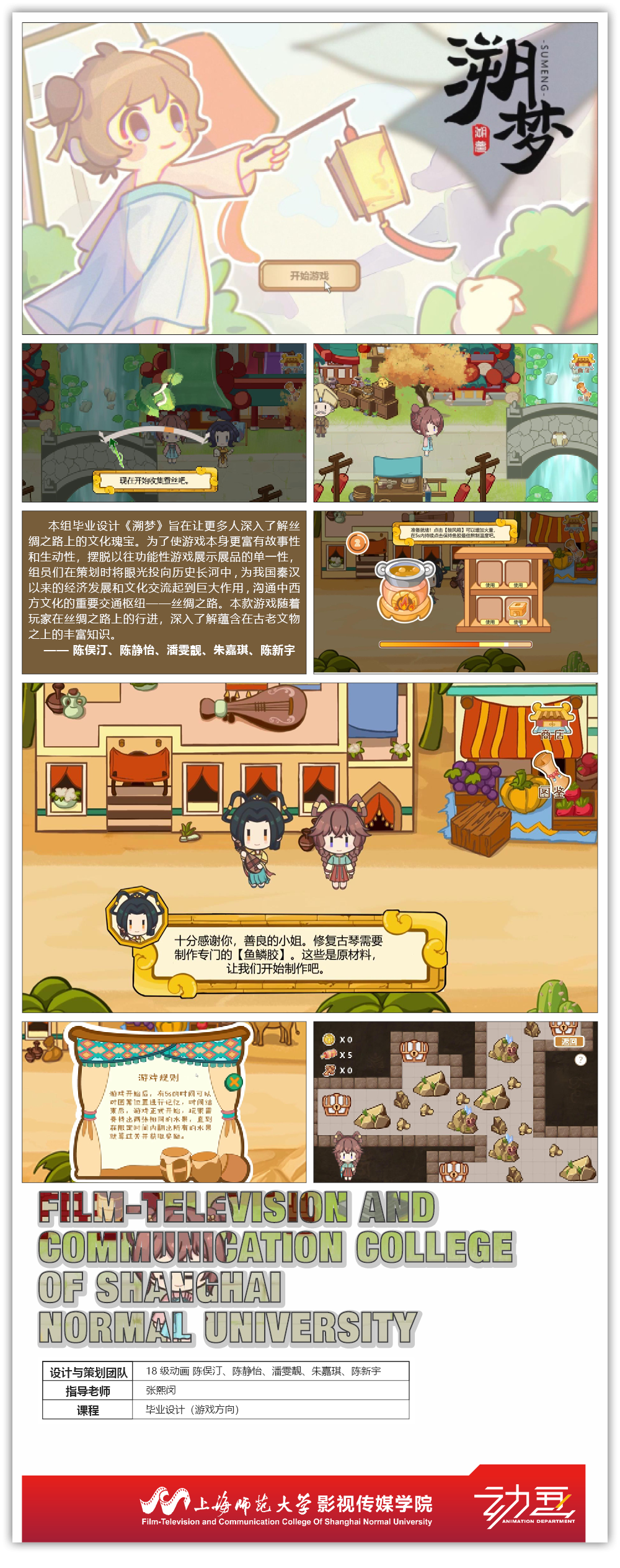 近年来,我校影视传媒学院动画专业持续推进课程思政与专业知识相融合的教学思路。动画专业张熙闵老师采取以游戏为载体传播弘扬中华民族传统文化的方式,在多门游戏方向课程及毕业设计实践中,引导学生团队多角度、多层面探索游戏设计与中国传统文化元素相结合的路径与方法,并完成多款功能性游戏Demo和游戏美术作品,在增强学子们专业技能的同时,培养学生们的爱国情操及其对传统文化的热爱。