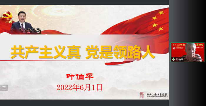 特邀组织员叶伯平老师以“共产主义真,党是领路人”为题开展叮咛教育。他以党史学习为主线送给毕业生四条赠言:一是牢记共产主义真,党是领路人;二是组织上入党一生一次,思想上入党一生一世;三是坚守底线,追求境界;四是把职业提升到事业来奋斗,把职业提升到术业来研究。