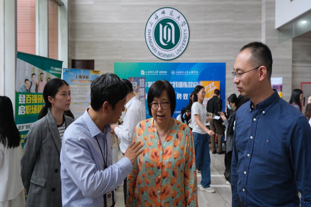 就业、实习招聘双选会在徐汇校区博物馆一楼拉开帷幕,本次双选会汇聚了教育、科创、公共服务等领域的二十余家优质用人单位,提供了涵盖教学、咨询、管理、人工智能等多样化实习岗位,旨在为学生搭建一个精准对接需求的就业平台。校长袁雯来到现场与学生交流,教育学院院长黄海涛、心理学院院长蔡丹向用人单位介绍了两学院学科建设和学生培养基本情况。