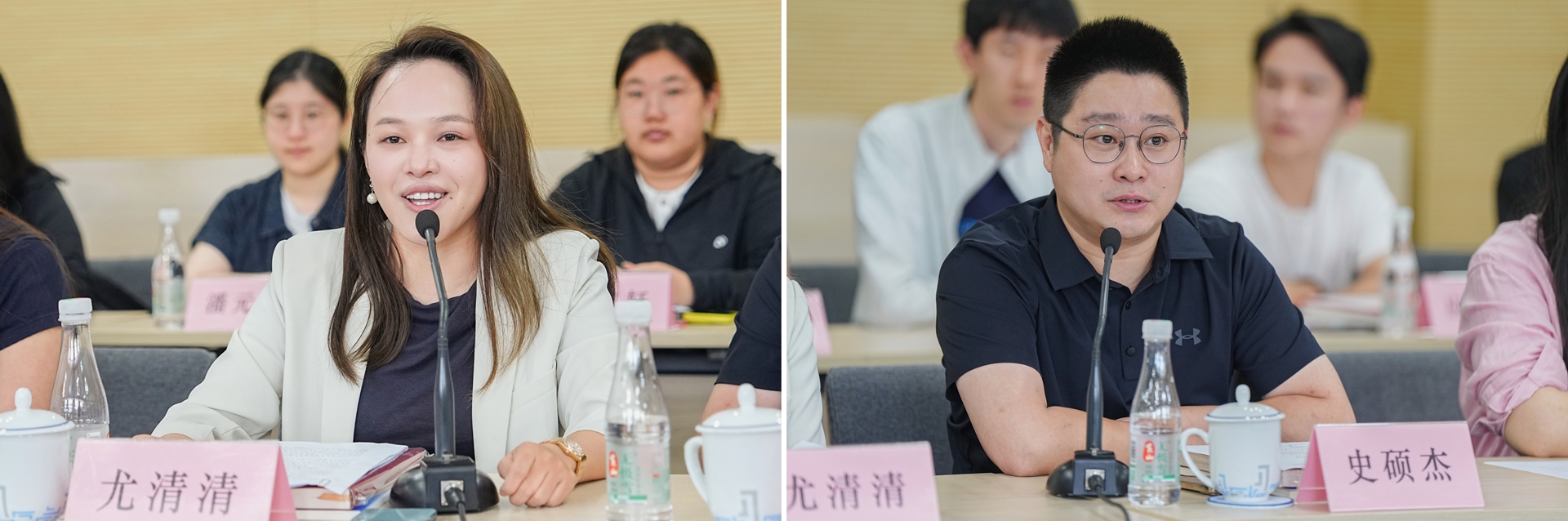 交流分享环节,2018届电子商务专业校友、志业人才(职业蛙招聘)创始人尤清清讲述了创业的心路历程,感恩母校多次给予的信任与支持。对校友工作,她希望运用大数据技术构建“校友互助云平台”,通过数字化实现校友资源的精准匹配与价值共享。2008届历史师范专业校友、上海漕河泾新兴技术开发区科技创业中心的史硕杰回顾了在师大求学生活的点滴,他勉励大家今后在工作中要踏实深耕岗位,有机会与母校一起续写重情义、有温度、传递爱的校友故事。