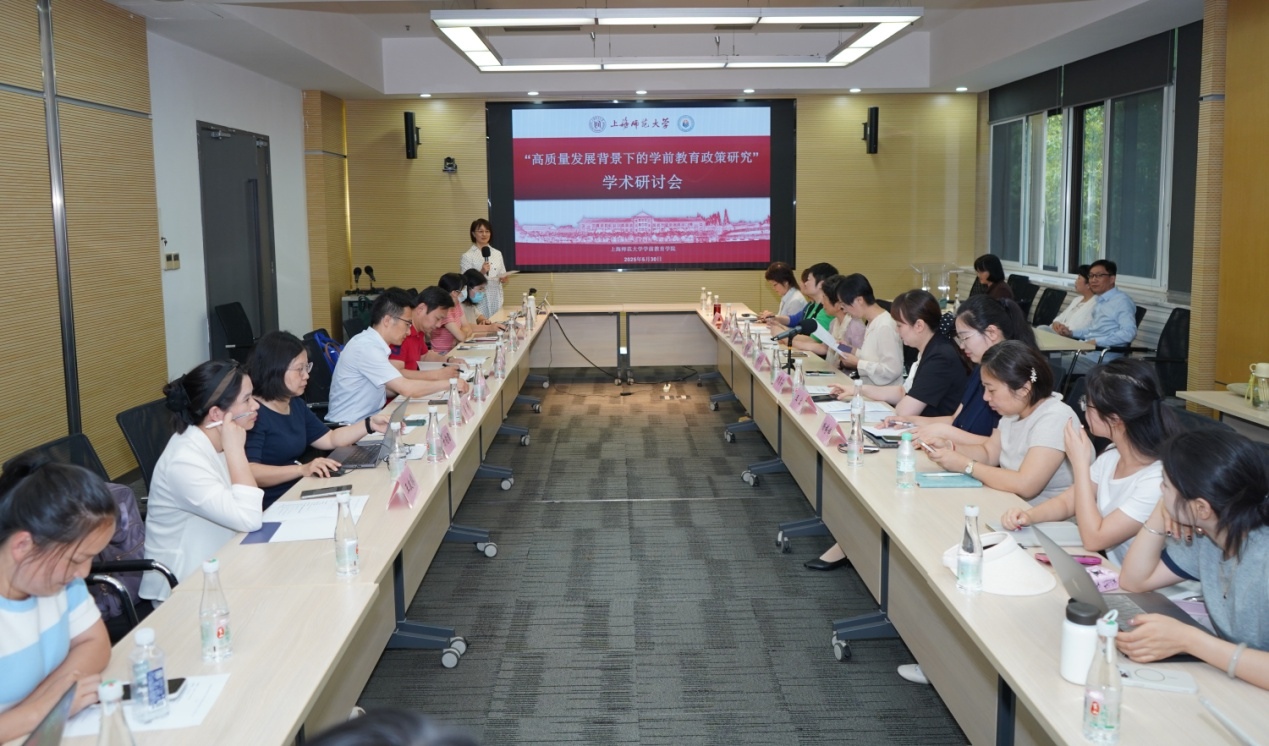 在2025年6月1日《中华人民共和国学前教育法》施行之际,为推动新时代学前教育高质量发展,5月30日,由上海师范大学学前教育学院主办,上海托幼协会、虹口学前教育产教研协同创新中心、上海市中福会儿童发展促进中心协办的“高质量发展背景下的学前教育政策研究”学术研讨会成功举办。广西师范大学教授、博士生导师,中国学前教育研究会理事长侯莉敏教授,上海托幼协会会长颜慧芬,上海师范大学社科处副处长王宏,虹口区教育学院学前教研主任许玭团队,中国福利会幼儿园园长、中福会儿童发展促进中心主任凤炜,上海师范大学学前教育学院教师以及部分研究生等参加此次研讨会。会议由上海师范大学学前教育学院副院长李燕主持。