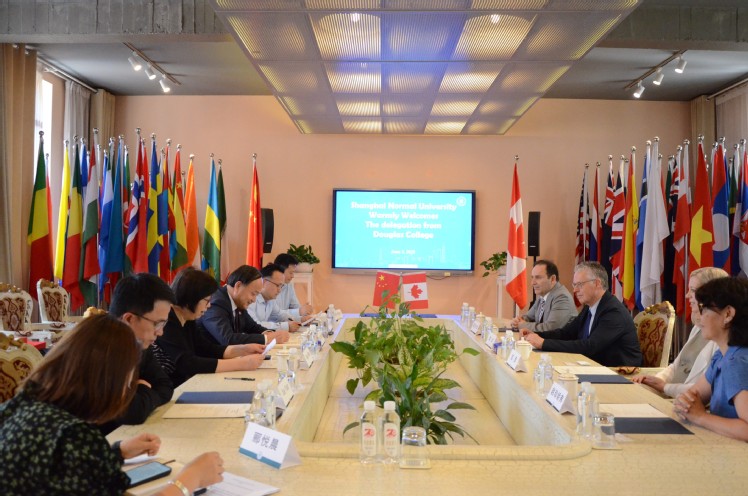 6月3日上午,加拿大道格拉斯学院校长凯西・丹顿(Kathy Denton)率学术副校长兼教务长索尔・博格福德(Thor Borgford)、国际教育副教务长莱昂内尔・罗尔丹-弗洛雷斯(Leonel Roldan-Flores)等代表团一行访问我校。校长袁雯、副校长蒋明军亲切会见来宾,国际交流处处长肖胜雄、体育学院院长薛原、副院长武海潭等相关负责人参与会谈。