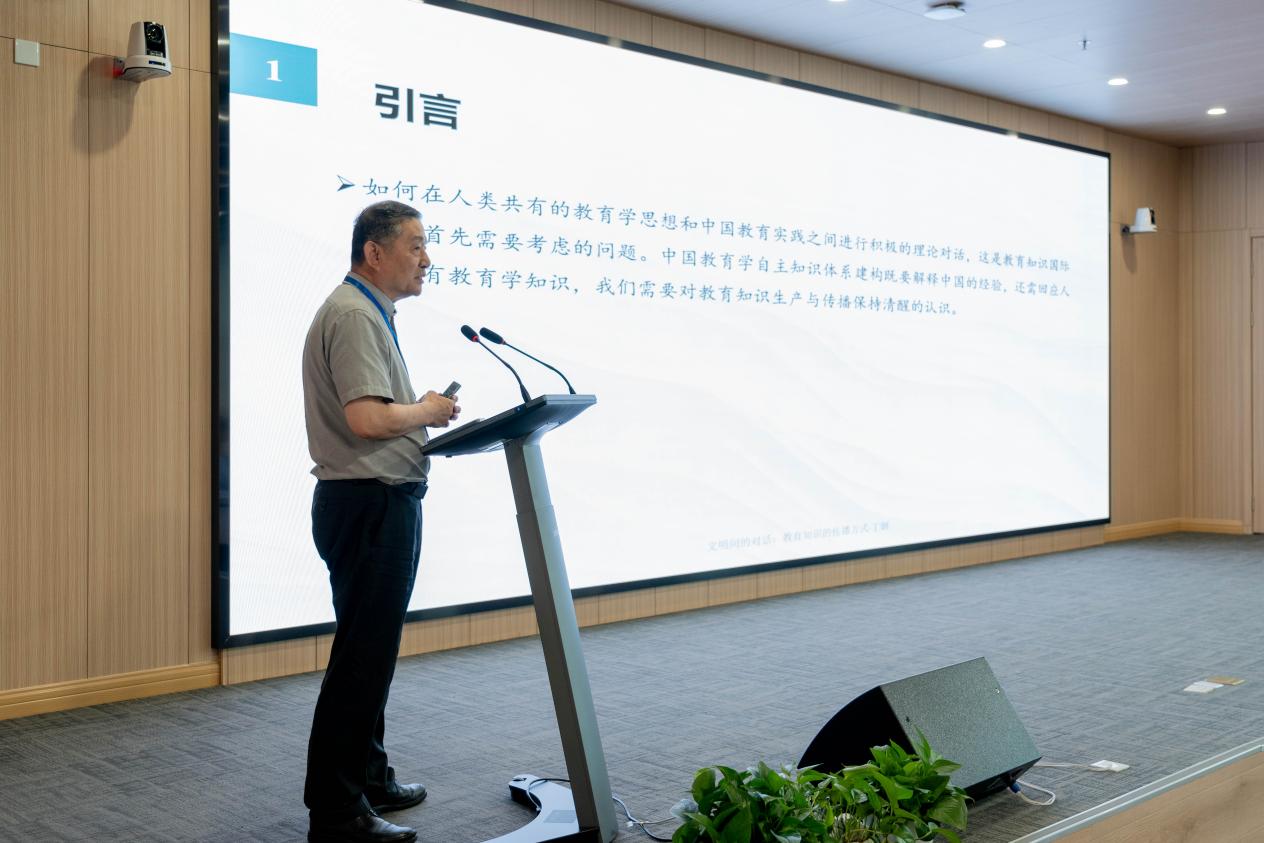 华东师范大学教育高等研究院院长丁钢教授围绕文明间教育知识的传播方式展开探讨,强调在人类共有教育学思想与中国教育实践中进行理论对话的重要性,以构建中国教育学自主知识体系。丁钢教授讲述了三种教育实践方式:严格的考试、不断的书写工作和分数评定等级,以及这三种方式如何影响学科规训制度。接着他介绍了三种教育场所:研讨班、实验室和课室,以及这三种场所在不同学科中的应用。同时,他介绍了教育知识传播方面的相互影响,并通过案例进行了详细阐述。最后,他强调要把握自主性和世界性:一是反思自我,加强知识原创性和影响力;二是理解他者,促使理解自我变得更加深刻,进而促使教育知识的传播;三是寻找共识,思考中国教育能够为探讨、解决世界教育问题做出何种贡献。