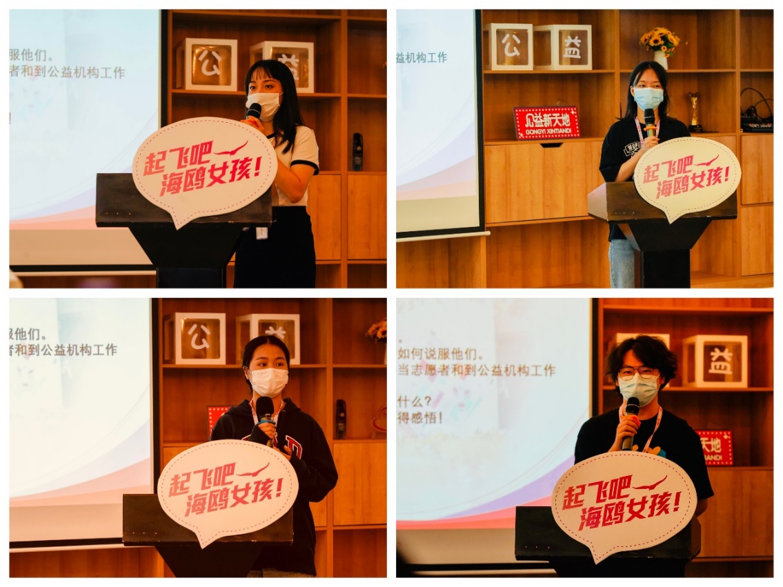 在公益社会组织主题分享座谈会上,大家更是收获颇丰。上海市海鸥计划、社会组织人才发展规划以及“我”的公益人生体验分享,对学生们今后的人生发展产生了很大的共鸣和鼓舞,激发了“小海鸥”们的公益之心,现场有好几位同学上台,对社会组织谈了新的认识,对以后投入公益的人生规划进行了互动与交流。活动在市妇联领导的讲话中落下帷幕。