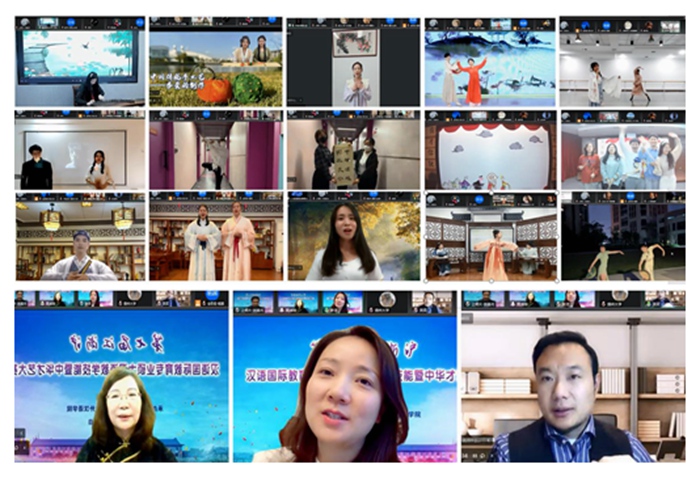 江浙沪11所高校选送的30名中外学生参加中华才艺大赛。选手们克服时空困难,成功地将朗诵、诗词吟唱、歌舞、书法、手工艺制作、皮影戏等多种艺术形态呈现在云端。大赛邀请著名书法家黄鸿琼、音乐表演艺术家许洁、朗诵家吴笑担任评委。选手的完美发挥、专家的精彩点评和亲身示范为广大师生带来了一场难忘的视听盛宴。
