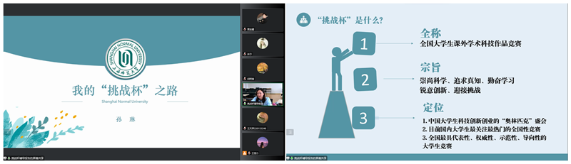 在“挑战杯”专题培训讲座活动中,学院邀请了“挑战杯”全国大学生课外学术科技作品竞赛特等奖指导教师、马克思主义学院党委副书记、副院长孙琳为参赛团队进行线上培训指导。