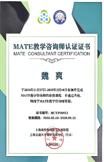 在此次评选中,我校喜获多项荣誉。信息与机电学院魏爽副教授主讲的《数字信号处理》课程,荣获2024学年度“上海高校示范性本科课堂”称号。同时,教育学院杨伊副教授在2024年度“上海高校教师教学能力提升试点班”学习中表现突出,获评“结项优秀教师”。魏爽副教授还凭借其丰富的教学经验和专业水平,获聘为教学指导专家。