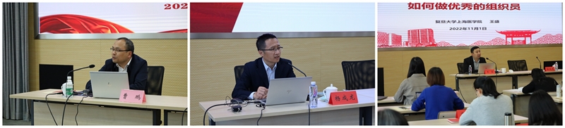 校党委组织部副部长杨成龙就“组织员的定位、职责与基层党建高质量创新发展”作专题讲授。复旦大学上海医学院党委组织员王盛分享“如何做好组织员工作”的体会和思考。同济大学党委组织部副部长杨秋华与学员们分享创建新时代全国党建工作示范高校的实践与思考。上海大学组织人事部组织处副处长卢吉超就“高校基层党组织建设”与学员交流分享自己的工作探索。上海工程技术大学党委组织部副部长熊伟围绕“基层党组织换届实务”分享实践经验和理论思考。校党委组织员沈明元围绕“做好新形势下党员发展工作——实务培训”作专题报告。