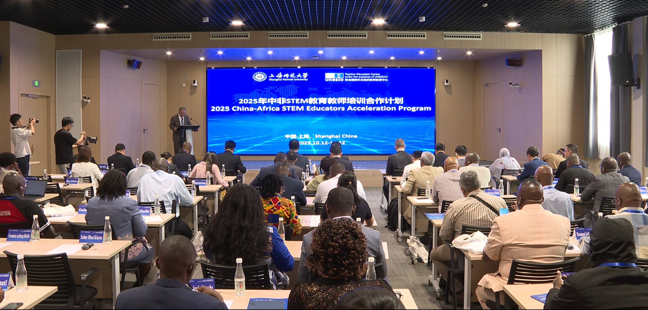 10月13日,由教育部国际合作与交流司、教育部教师工作司、上海市教育委员会指导,联合国教科文组织教师教育中心、上海师范大学主办的“2025年中非STEM教育教师培训合作计划”正式开幕。来自坦桑尼亚、加纳、南非、肯尼亚、埃塞俄比亚、乌干达、卢旺达、赞比亚、尼日利亚、马拉维、科特迪瓦等国的50余位STEM领域的非洲国家教育官员、教师教育者、专家学者及中小学教师齐聚一堂。