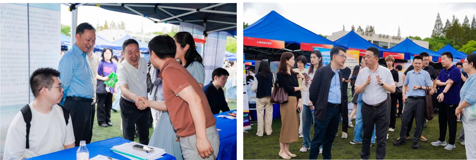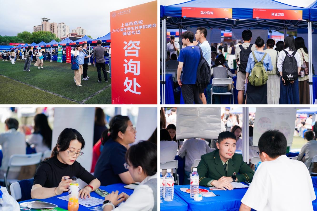 10月16日,由上海市教育委员会、上海市学生事务中心、上海市各区教育局指导,我校主办的上海市高校2026届毕业生秋季师资专场招聘会在徐汇校区西部大操场举行。本次招聘会重点聚焦教育行业,吸引519家用人单位及7000余名学生参与,共计带来1952个岗位需求,6098个用人需求。校党委副书记、副校长朱惠军陪同青浦区教育工作党委书记程卫国一行、浦东新区教育局副局长毛力熊一行走访各展位,并与用人单位和毕业生亲切交谈。