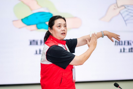 上岗宣誓仪式后,我校聚焦理论学习、能力素养、医疗应急、志愿青春四大板块开展校内培训,与市级培训、岗位实训构成“三阶”体系。马克思主义学院讲师陈晓静以“树立全球视野,理解大变局中的国家作为”为主题,将理论学习融入经济全球化的战略机遇,引导“小叶子”在新时代新征程中勇担使命。徐汇区红十字应急救护培训核心师资、主管护师周小红带来干货满满的急救知识,现场演示如何使用AED,介绍气道梗阻的紧急处理策略。礼仪培训老师朱婷婷结合自身参加工博会、世界人工智能大会等大型赛事服务培训经历,从着装、表情、仪态等方面开展礼仪规范指导。人文学院二年级“小叶子”杨逸鸥从责任、纪律、收获、成长四个维度,分享自己与进博的故事,激励志愿者珍惜机会、绽放青春,实现成长与突破。
