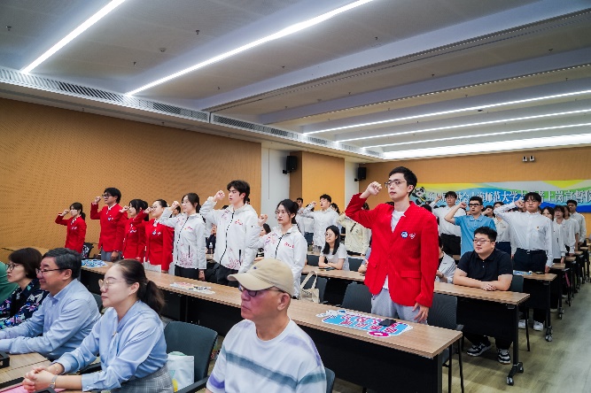 在全体师生的共同见证下,志愿者们庄严宣誓,以青春之声奏响“奉献、友爱、互助、进步”的志愿服务精神,将铿锵誓言转化为服务进博的实际行动,展现师大青年的卓越风采。