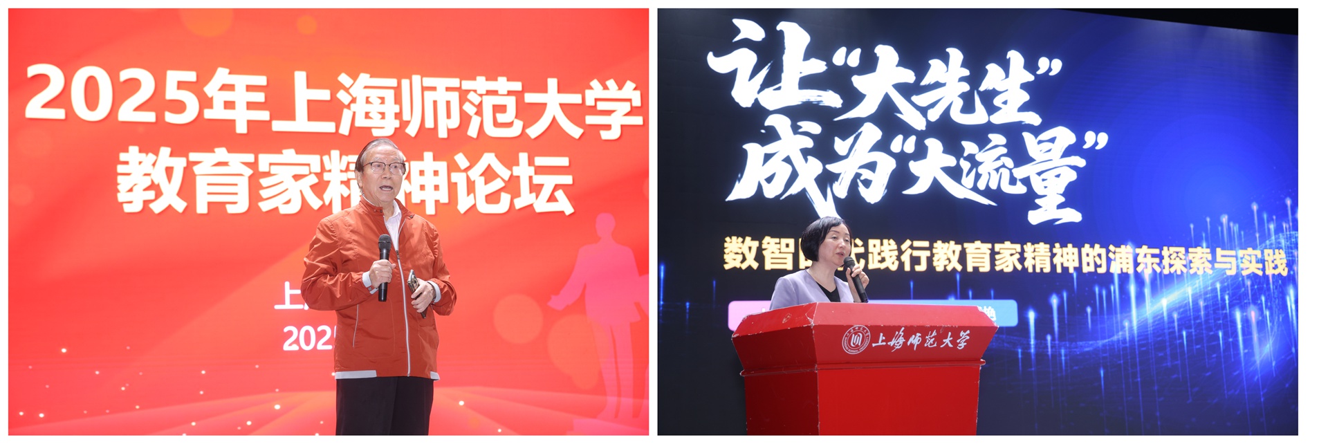 为弘扬教育家精神,大赛当天由我校教师工作部、教务处与上海市于漪教育教学思想研究中心,联合举办了2025年上海师范大学教育家精神论坛。本次论坛汇聚教育界专家学者,围绕教育家精神的内涵、实践与传承展开深入交流,论坛报告嘉宾分别是第九届全国道德模范提名奖获得者、上海师范大学原校长、著名教育慈善家、全国道德模范提名奖获得者杨德广教授,上海市教育功臣、上海市浦东教育发展研究院院长李百艳,2022年“全国最美教师”、江西省上犹县特殊教育学校蒙芳校长,上海市教师教育学院、于漪教育教学思想研究中心兰保民正高级教师,上海市浦东教育发展研究院王友正高级教师,以及2025年全国教师教学创新大赛一等奖获得者、上海师范大学杨伊老师。