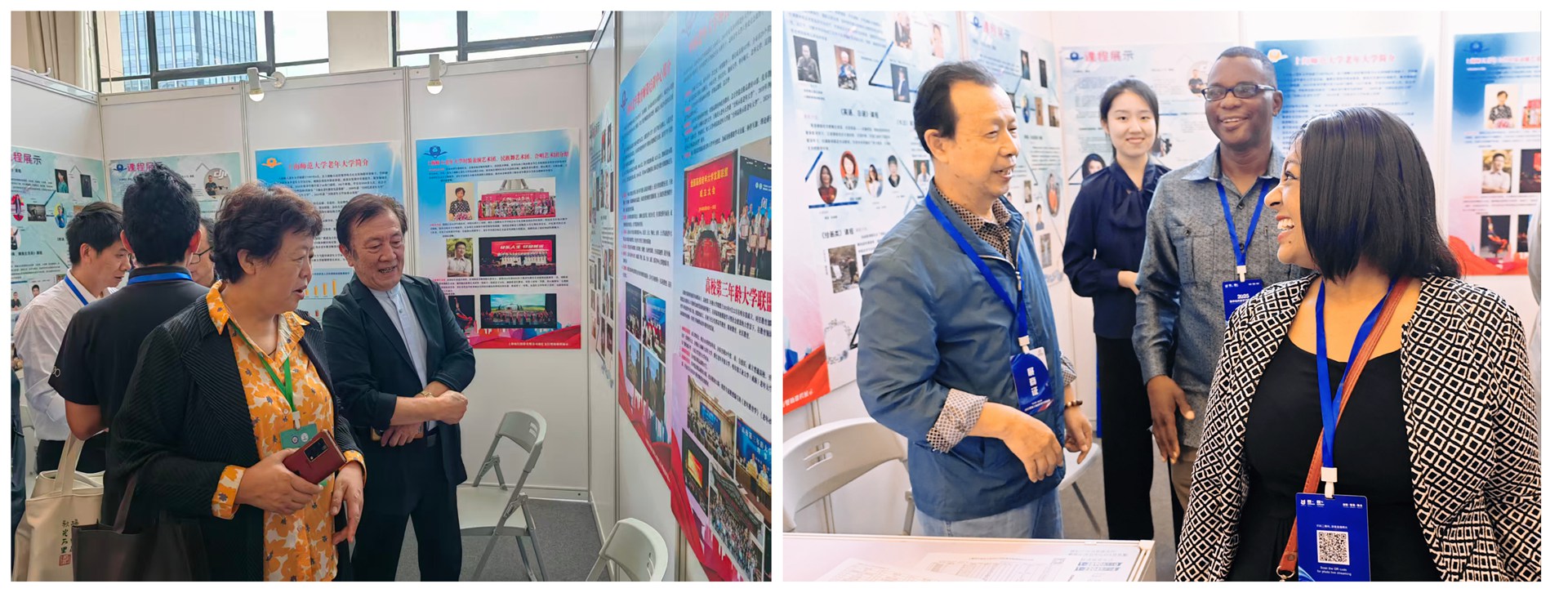 展会期间,我校老年大学的展区始终热度不减。前来观展和咨询的人群络绎不绝,他们中有事业单位退休人员、社区热心居民、企业管理退休职工,甚至不乏被展台吸引的外国友人。