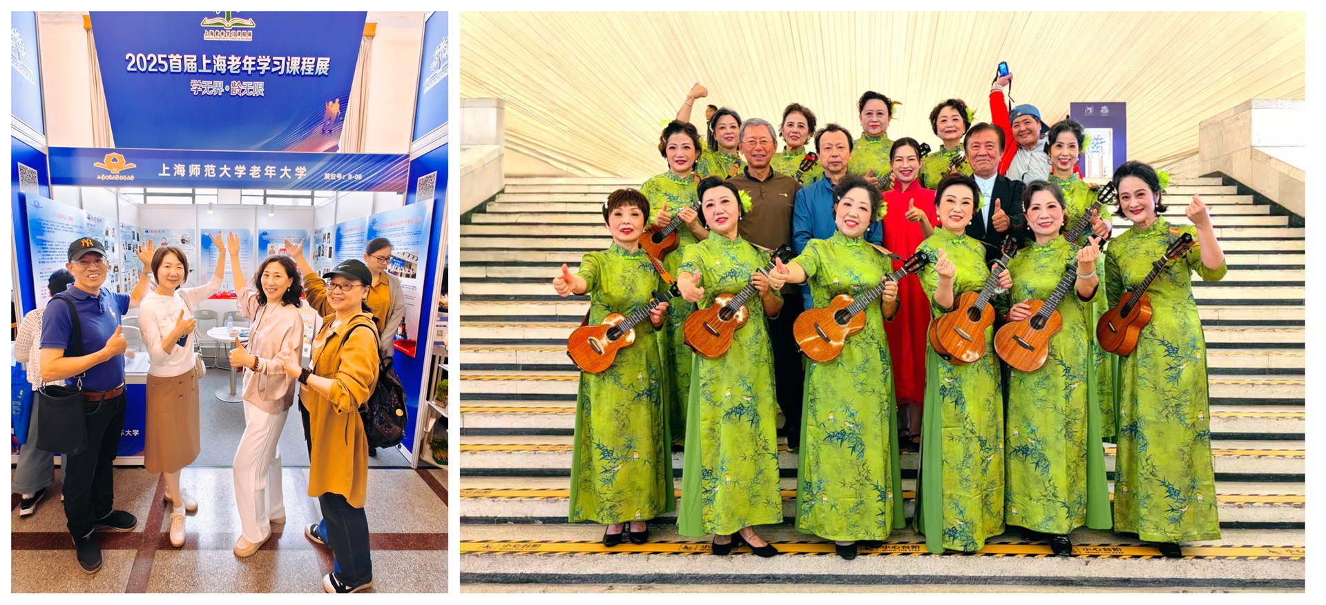 展会上,学校还选派女声合唱班、民族舞艺术团班以及尤克里里班的学员们,参加了组委会统一安排的课程展演。悠扬动听的合唱、韵味十足的民族舞、轻松欢快的琴声,学员们精神焕发、神采飞扬的表演,赢得了现场观展者的阵阵掌声。这不仅是学习成果的汇报,更是老年学员饱满精神风貌与学校扎实教学水平最真实的体现。