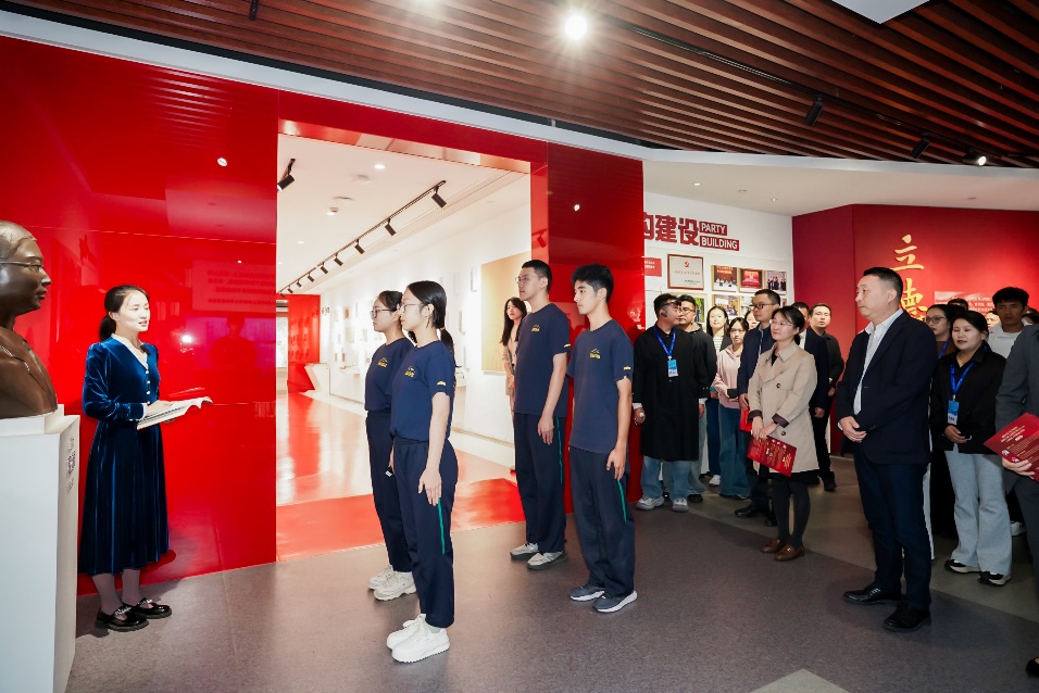 作为团中央组织部此次在上海考察的唯一高校教学点,我校的现场教学围绕《习近平与大学生朋友们》第二卷中《习书记勉励我们“未来做传播中华优秀传统文化的好老师”》篇章,再现了习近平总书记2007年9月6日来到上海师大考察时的场景和故事。通过仪式教育、情景演绎、亲历者讲述等实景课堂和行走路线,让在场人员沉浸式感受总书记对青年学子的殷切期望和谆谆教诲。教育学院杨伊副教授带领考察团一行先后走进徐汇校区校史馆、文苑楼、小音乐厅等,沉浸式体验总书记当年考察足迹。习近平总书记当年考察上海师范大学的亲历者,人文学院苏智良教授、影视传媒学院姜杉副教授动情回顾了当年与总书记交谈的场景和感受。人文学院古籍所王乙珈老师讲解了总书记来校观看的古籍原本,来自环境与地理科学学院的宝根师德师风研习社和音乐学院玉兰筝团的同学们进行了现场情景演绎。
