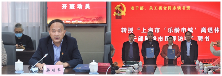 为深入学习宣传贯彻党的二十大精神,贯彻落实习近平总书记关于老干部工作、关心下一代工作的重要指示批示精神,11月24日上午,由组织部、党校、离退休工作部共同举办的老干部、关工委老同志读书班在徐汇校区外宾楼举行。本次读书班采用线上线下相结合的方式进行,邀请全体离休干部、退休局级干部、关工委老同志参加。校党委常委、副校长蒋明军,校党委常委、党校常务副校长、组织部部长张惠康,以及组织部、党校、离退休工作部(处)相关负责人出席了开班仪式。
