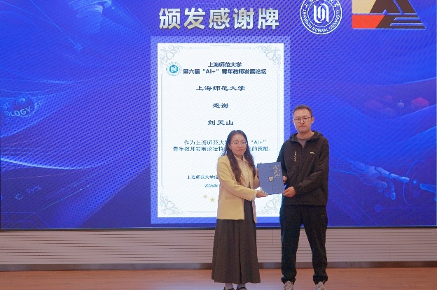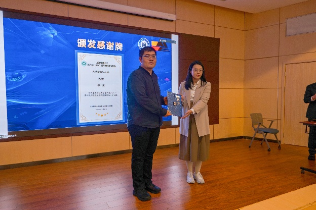 在“多模态内容理解与生成”分论坛中,南京理工大学李泽超教授围绕图像视频智能分析与生成,介绍了团队在语义分割、视觉定位、可控生成模型等方面的研究进展;华东师范大学王长波教授则分享了数据与物理混合驱动的虚拟场景生成技术,探讨了其在数字孪生等领域的应用前景;南京邮电大学刘天山教授针对工业操作场景中视频行为理解的挑战,对团队提出的基于视觉-语言预建模型的三阶段技术体系进行了详细讲解。论坛由青联会执委祁宏达主持,执委杨茹颁发感谢牌。