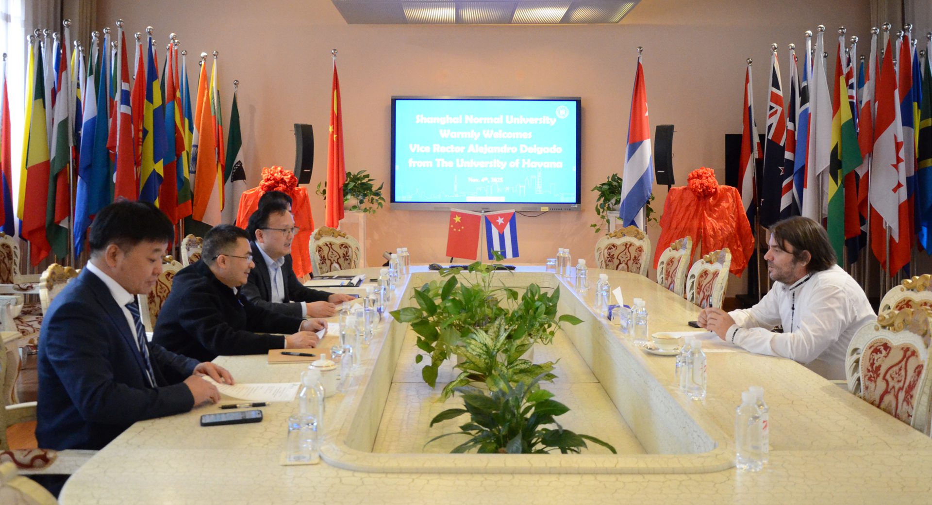 11月4日上午,古巴哈瓦那大学副校长亚历杭德罗·德尔加多 (Alejandro Delgado) 来访,副校长李晔亲切会见客人。我校国际交流处、马克思主义学院负责人陪同出席会见及后续揭牌仪式。