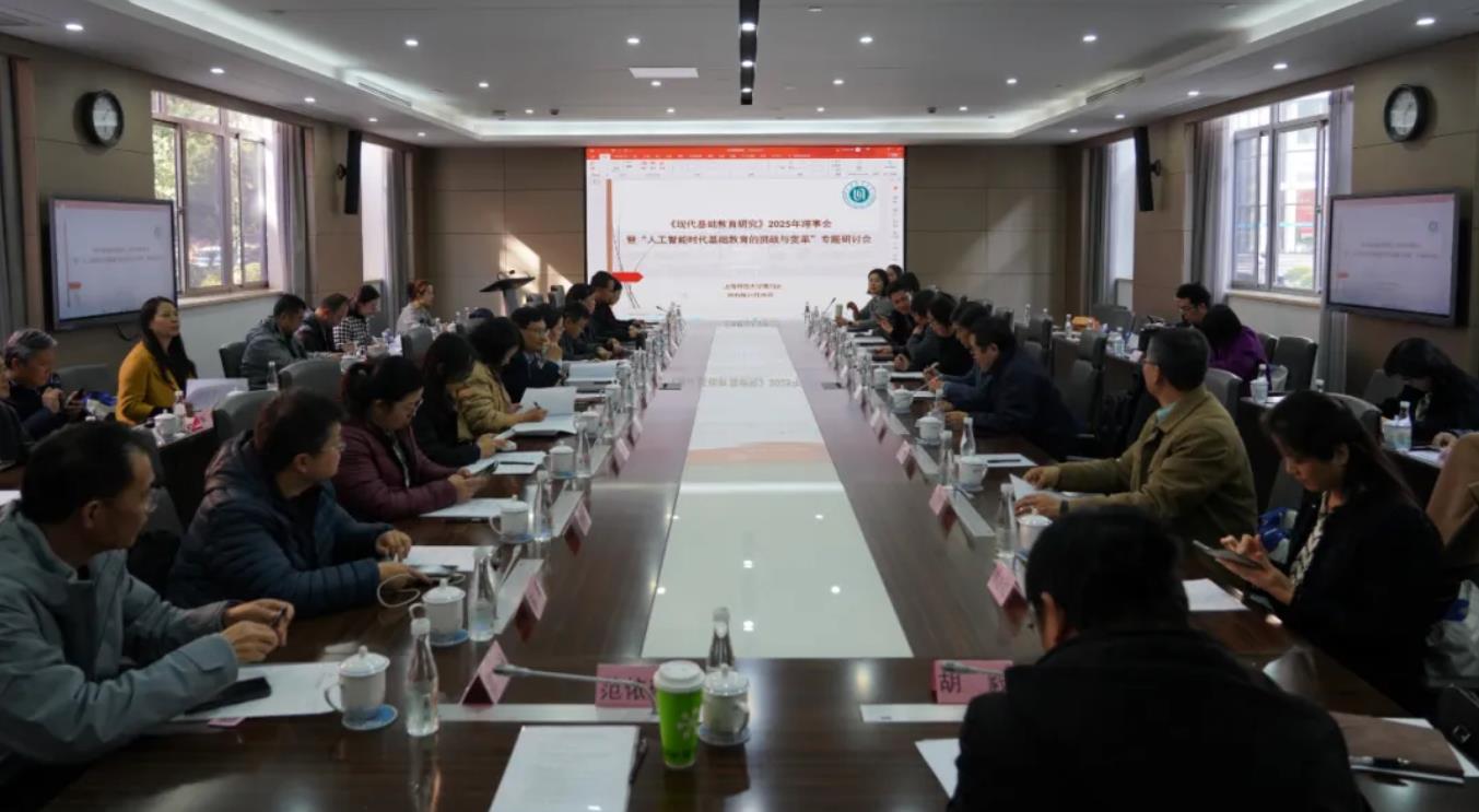 11月20日,《现代基础教育研究》2025年理事会暨“人工智能时代基础教育的挑战与变革专题研讨会”在我校召开。上海市人民政府参事、上海师范大学原校长袁雯教授,上海师范大学教育学院院长黄海涛教授出席会议并致辞。30余位上海市知名中小学校长参加了会议。