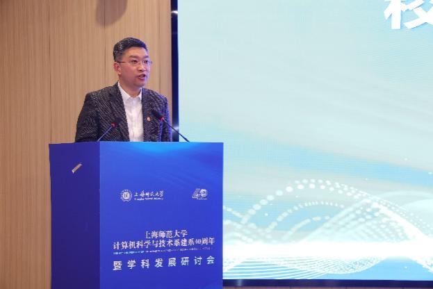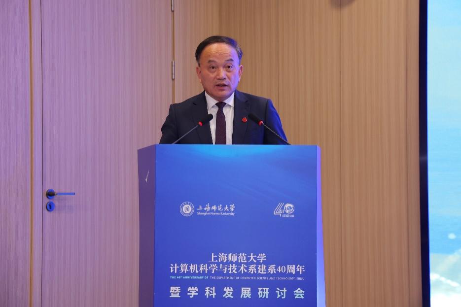 蒋明军在致辞中充分肯定了计算机系成立四十年来取得的成绩,并代表学校向计算机科学与技术系四十年表示祝贺,向长期支持学科建设的老领导、老教师和广大校友表达诚挚感谢。他指出,面对学校确立的建设教师教育领先的创新型高水平大学战略目标和上海市高教综合改革机遇,信机学院应聚焦基础教育、先进制造行业需求,紧扣“为科服务、为产育人”理念,要坚守育人初心、铸就卓越人才高地;勇攀科研高峰、服务科技自立自强;深化开放融合、构建共赢发展生态;深化新工科改革,在卓越教师与应用型人才培养、科研创新及产学研融合上担当重任,再谱华章。