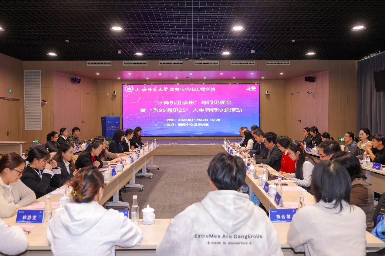 会后,学院举办了“计算机世承班”导师见面会暨“当95遇见25”人生导师沙龙活动。10位兼职教授、学院领导、计算机系负责人和教师代表、2023级“计算机世承班”全体学生和师范专业新生代表参加。