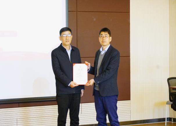 活动伊始,化材学院副院长郎万中教授为张国勇颁发企业导师聘书。此次聘任是学院深化产教融合、加强校企合作的重要举措,旨在依托行业领军人物的实践优势,为学生学业提升、职业规划提供精准指导,助力青年学子在专业成长道路上走得更稳、更远。