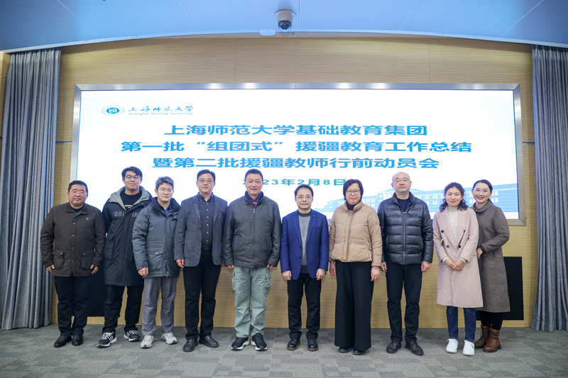 2月8日上午,上海师范大学基础教育集团第一批“组团式”援疆教育工作总结暨第二批援疆教师行前动员会在上海师大会议中心2号报告厅举行。校党委书记林在勇,校长袁雯、副校长张峥嵘,援疆教师派出学院、附属学校负责人,第一批、第二批援疆教师以及校基础教育处全体人员参会。会议由副校长张峥嵘主持。