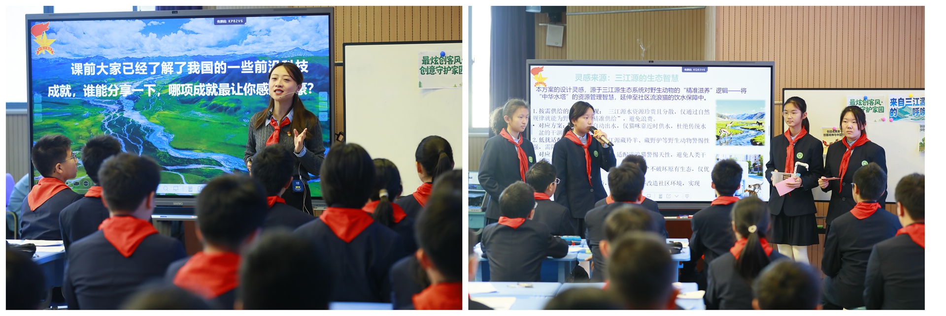 少先队活动课《最炫创客风·守护三江源》中,张玲丽老师以“情景导入—创意实践—总结展望”为主线,引导学生从数学视角探索生态保护路径,展现了学科育德的无限可能。随后的“学生工作与班级管理微论坛”上,五位班主任通过“班徽凝聚归属感”“自主管理激发内驱力”等鲜活案例,分享育人智慧。这些真实场景让师范生对“做有温度的教师”有了更深体悟。