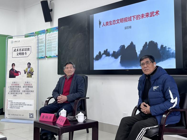 为弘扬中华传统体育文化,增强文化自信,2月28日下午,体育学院特邀上海体育学院教授、中国武术九段,上海市教育系统关工委邱丕相工作室导师邱丕相教授和国际手搏联盟主席袁祖谋先生作专题讲座,体育学院部分本、研学生参加。讲座由高幕峰教授主持。