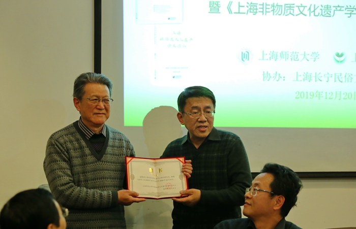 在此次会议上,上海师范大学中国非物质文化遗产传承研究中心还为2020年度五位特约研究员颁发了聘书。