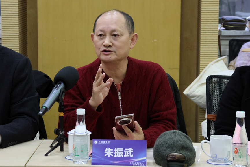 在申报基础与学科方向研讨环节,外国语学院黄立教授详细汇报了外国语学院在外国语言文学各二级学科方向的积累、现有师资力量、标志性研究成果以及初步规划的学科方向设想。接下来,与会专家学者进行了自由交流。人文学院宋莉华教授、施晔教授、杨丽娟教授、姚云帆教授、鲁承发教授和对外汉语学院副院长朱庆祥教授等学者围绕如何进一步凝练学科方向特色、彰显跨学科交叉融合优势、优化申报材料表述、整合校内外资源等议题展开了热烈而深入的讨论,提出了诸多建设性意见,现场学术氛围浓厚,展现出齐心协力、共克难关的决心与智慧。